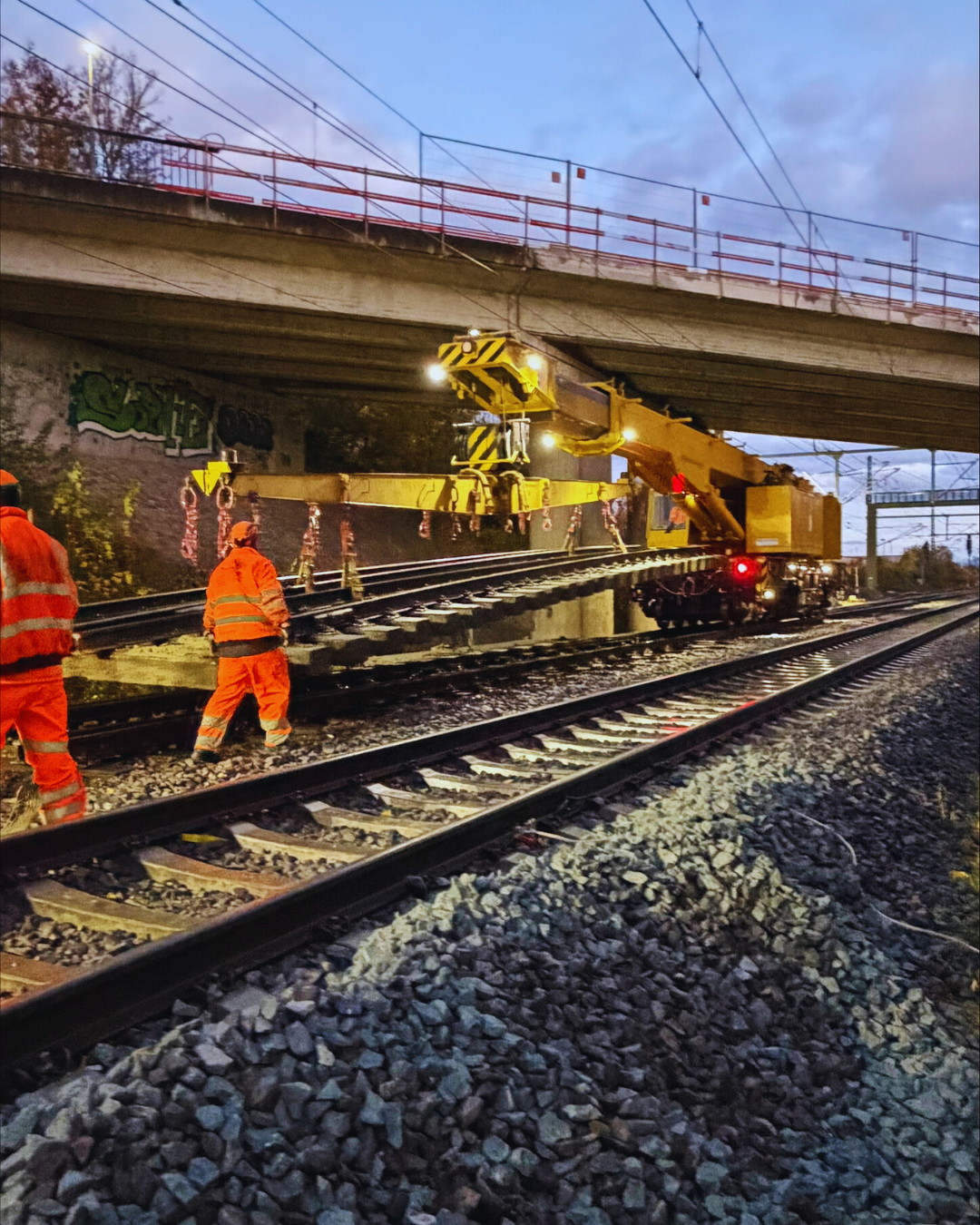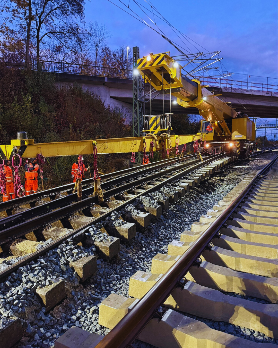 Die Arbeiten erfolgen unter laufendem Betrieb mit technischer Sperrung der jeweiligen Gleise und finden sowohl tagsüber als auch nachts statt.