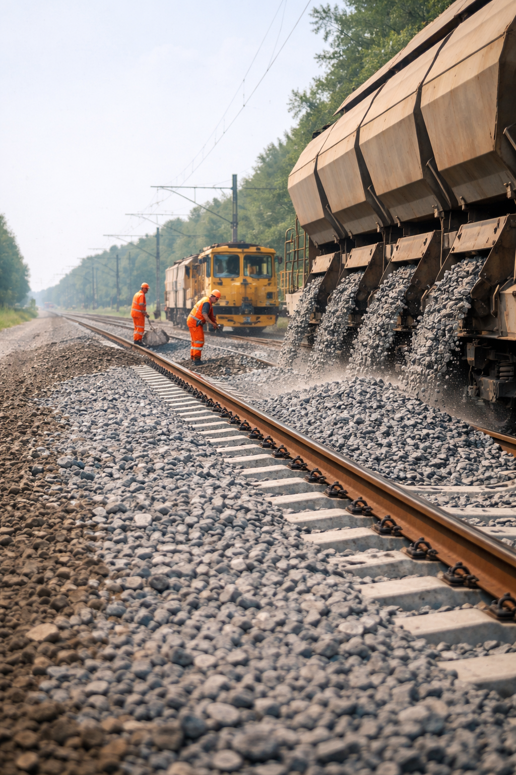 Schotter ist ein unscheinbarer, aber zentraler Bestandteil jeder Bahnstrecke. Er trägt zur Stabilität des Gleises bei, sorgt für Entwässerung und verteilt die Lasten der Züge gleichmäßig in den Untergrund. Doch wie gelangt der Schotter eigentlich ins Gleis? Der Weg dorthin ist präzise geplant und technisch durchdacht.